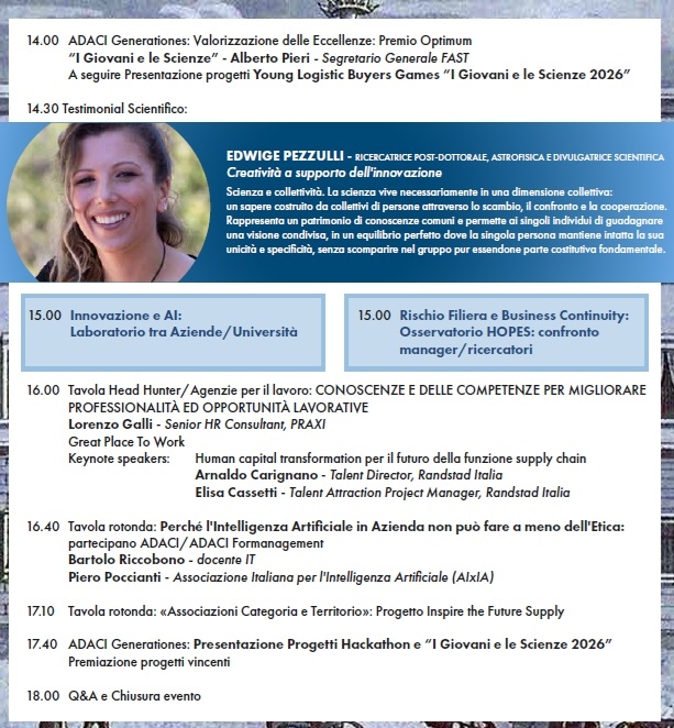 Partecipano all’evento testimonial ispirazionali di primo livello del mondo scientifico (Edwige Pezzulli) e sportivo (Maurizia Cacciatori) per utilizzare metodi ed approcci diversi per migliorare le performance manageriali.