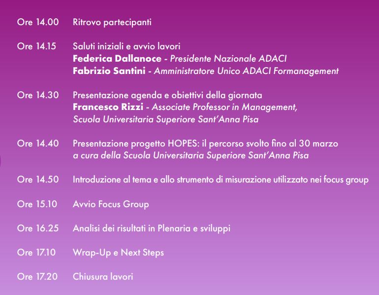 Con il nuovo anno prende avvio la fase operativa progetto HOPES, che si svilupperà in diverse tappe da febbraio fino a novembre quando in occasione del Symposium PA di ADACI verrà presentato il report finale.