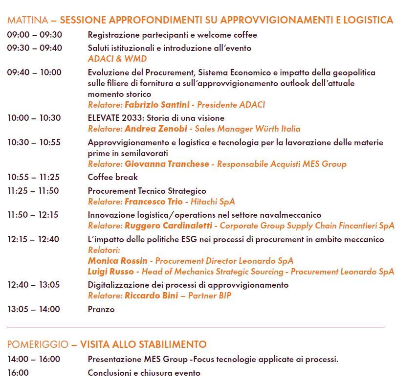 Nel pomeriggio, i partecipanti avranno l’opportunità di vivere un’esperienza esclusiva con la visita allo stabilimento MES Group, per toccare con mano le soluzioni tecnologiche applicate ai processi industriali.