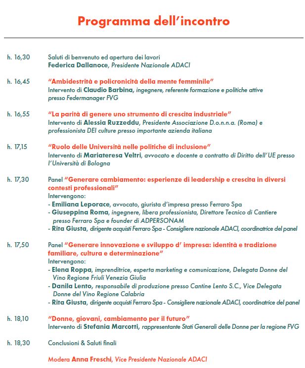 ADACI ti invita a partecipare al webinar "Generare presenza, competenza e impatto: guidare il cambiamento insieme tra storie, sfide e futuro della leadership femminile", organizzato in collaborazione con Stati Generali delle Donne e Associazione D.o.n.n.a.